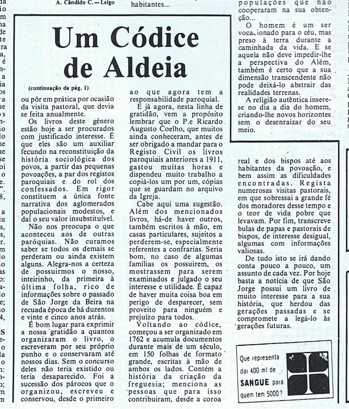 (4) UM CÓDICE DE ALDEIA, Dr Júlio César Baptista